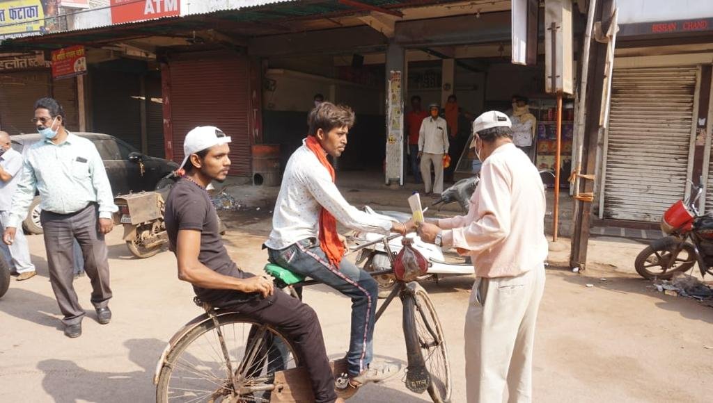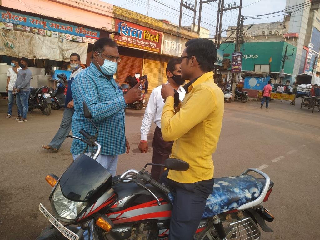 दुर्ग। नगर पालिक निगम भिलाई क्षेत्र में मास्क नहीं लगाने वालों से जुर्माना लिया जा रहा है! मास्क की कार्यवाही में निगमायुक्त ऋतुराज रघुवंशी स्वयं मौजूद रहकर कार्यवाही करवा रहे हैं! प्रातः 6:00 बजे निगम की टीम ने अकाश गंगा क्षेत्र से कार्रवाई प्रारंभ की! ओम शांति ओम चौक, अकाश गंगा, सुपेला चौक, गदा चौक, पावर हाउस चौक एवं नंदनी रोड में मास्क चेकिंग अभियान चलाकर जुर्माना वसूल किया गया! बढ़ते कोरोना मरीज के मद्देनजर मास्क नहीं लगाने वालों पर निगम क्षेत्र में सघन रूप से लगातार कार्रवाई की जा रही है! आज शाम तक 420 लोगों पर कार्रवाई करते हुए 35400 रुपए जुर्माना वसूल किया गया! यह कार्रवाई निरंतर जारी रहेगी! कार्रवाई के दौरान उपायुक्त अशोक द्विवेदी, सहायक राजस्व अधिकारी संजय वर्मा, शरद दुबे एवं दल प्रभारी प्रकाश अग्रवाल सहित अन्य अधिकारी/कर्मचारी मौजूद थे!