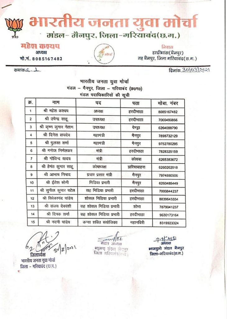 पार्टी की मजबूती के लिए दिया जाएगा विशेष ध्यान – युवा मोर्चा मैनपुर