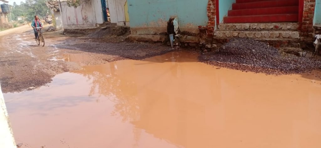 सड़क निर्माण के नाम पर चौड़ीकरण कर मुरम बिछा गया है वहीं कुछ जगहों पर गिट्टी डाला गया है बावजूद सड़क किनारे बसे लोगों को अपने घरो तक कूद कर जाना पड़ता है वहीं सामने बरसात का मौसम आने वाला जिस पर ठेकेदार द्वारा कोई दिलचस्पी नहीं दिखाया जा रहा