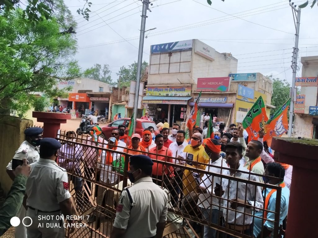 उतई ।भारतीय जनता युवा मोर्चा उतई मंडल के तत्वाधान में नगर पंचायत उतई के सामने राज्य सरकार के खिलाफ सांकेतिक धरना प्रदर्शन किया गया।उतई भाजयुमो मंडल व भाजपा मंडल द्वारा राज्य सरकार के महत्वाकांक्षी योजना गोठान का निर्माण ढाई वर्ष बीतने के बाद भी नही हुआ है जिसे लेकर राज्य सरकार व स्थानीय विधायक व गृहमंत्री के खिलाफ नारे बाजी करते हुए धरना प्रदर्शन किया गया।भाजपा कार्यकर्ताओं ने धरना प्रदर्शन के दौरान मवेशी में साथ मे लाए थे जिसे नगर पंचायत के गेट के सामने बांध कर एक घण्टे तक रखे थे,भाजपा कार्यकर्ताओं ने राज्य सरकार के खिलाफ कहा कि झूठी वाहवाही से काम नही चलेगा जो वादा चुनाव के दौरान कांग्रेस सरकार ने जनता से किया था वो अभी तक नही हुआ है जिसका साक्षत उदाहरण नगर पंचायत उतई में देखने को मिल जाएगा वो है उतई नगर में अभी तक गोठान निर्माण न होना है।