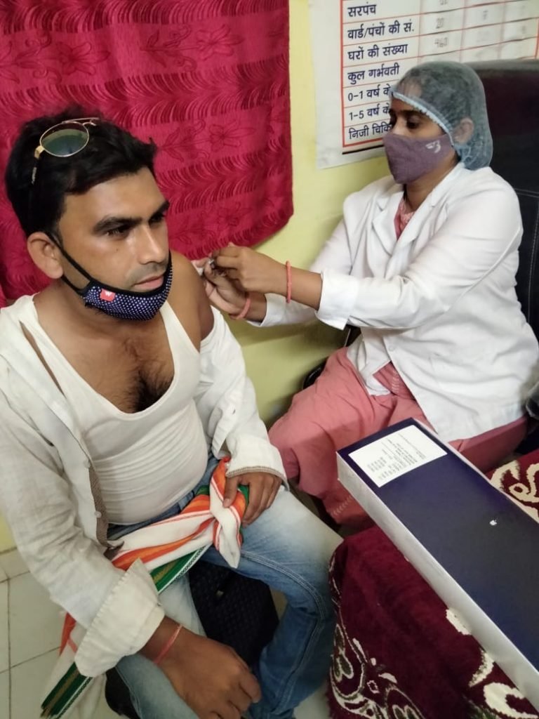 पाटन। आज ग्राम महुदा के उप स्वास्थ्य केंद्र मे 18 से 44 उम्र के लोगो को कोविड-19 वैक्सीन लगाया गया। जिसमे ग्राम महुदा व उफरा के युवाओ मे काफी उत्साह देखा गया। ब्लाक संयोजक परस राम साहू ग्राम महुदा निवासी ने भी कोरोना के खिलाफ इस जंग में लड़ने और कोरोना संक्रमन से सुरक्षित रहने पहला टीका लगवाया। श्री साहू ने युवाओं से अपील करते हुए कहा कोरोना से लडना है तो वैक्सीन जरूरी है आज हमारे विशेषज्ञों कहना है कि आने वाले समये मे कोविड-19 की तीसरी लहर आने वाली है और वैक्सीन ही एक मात्र रामबान है जो हमारे शरीर के इम्युनिटी को बडाकर कोरोना से लडाई लडने मे मददगार साबित होगा। साहू ने कहा कि 18 वर्ष से 44 वर्ष के सभी युवा वैक्सीनेशन अभियान मे हिस्सा ले टीका जरूर लगाये और लोगो को जागरूक करे।