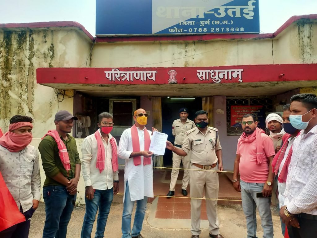 उतई ।दुर्ग ग्रामीण क्षेत्र के उतई-अंडा क्षेत्र में अवैध कारोबार चल रहा है जिसमे गैर छत्तीसगढ़ीया और कुछ जनप्रतिनिधि के मिलीभगत की आशंका है, लगातार दारू गांजा के अवैध कारोबार चल रहा है, साथ जिनके विरोध में और जमीन दलालों द्वारा किसानों को बहला फुसला कर उनकी जमीन को बेचा जा रहा है, इस कालाबाजारी पर अंकुश लगाने के लिए छत्तीसगढ़ीया क्रान्ति सेना के सेनानी ने थाना प्रभारी के नाम ज्ञापन सौप कर पुलिस प्रशासन को उचीत कार्यवाही करने की चेतावनी दी। लंबे समय हो रहे अवैध जमीन दलाली,मिल कारखाना में बाहरी मजदूर के भर्ती के विषय में भी अवगत कराया,किराए में रह रहे लोगो पर भी नजर रखने की बात कही, ओर कहा अगर पुलिस प्रशासन अपने कार्य को पूरा जिम्मेदारी से नहीँ करती है तो छत्तीसगढ़ीया क्राँति सेना आगे आने वाले समय में अपना विरोधत्मक कार्य करेगी, जिसका जिम्मेदार शासन और प्रशासन की होगी, इस बात को साफ तरीके से ज्ञापन में दर्शाया है।