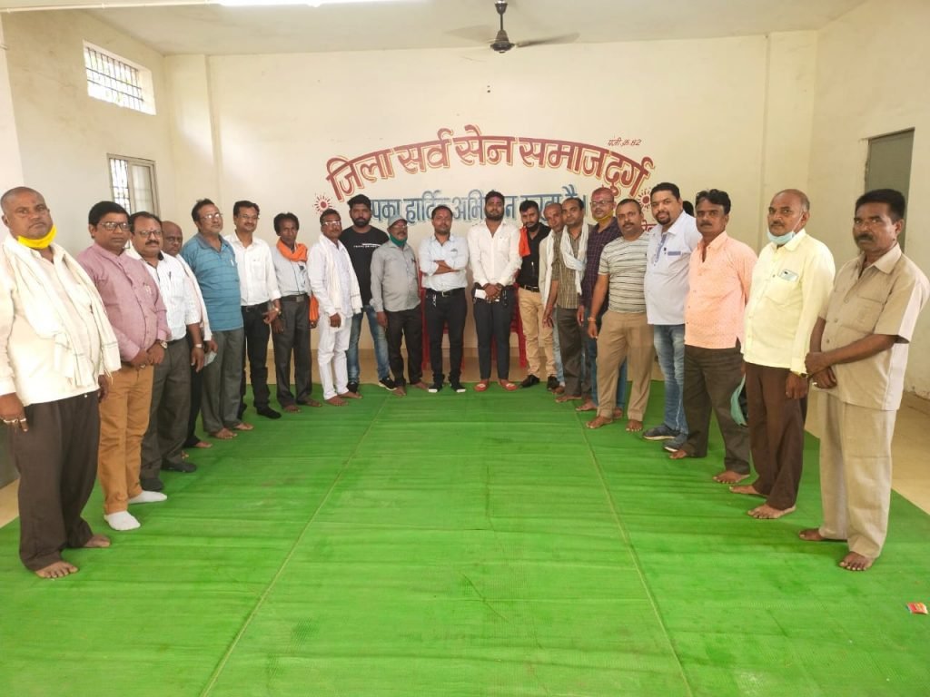 दुर्ग–सर्व सेन नाई समाज दुर्ग का प्रथम जिला स्तरीय बैठक शक्ति नगर में आयोजित किया गया था, जिसमे दुर्ग जिला के नवनिर्वाचित अध्यक्ष भुपेन्द्र सेन ने अपने कार्यकारिणी का विस्तार किया, दुर्ग जिला अध्यक्ष भुपेन्द्र सेन भीम के नेतृत्व मे कुछ रिक्त पदों पर अपने नये पदाधिकारियों को मनोनीत किया गया है,दुर्ग जिला सर्व नाई सेन समाज के नये पदाधिकारियों मे उपाध्यक्ष के रूप में संतोष सेन भिलाई की नियुक्ति की गई साथ ही महामंत्री राजु सेन भिलाई को बनाया गया,कोषाध्यक्ष छन्नू सेन बने वही युवा विंग की जिम्मेदारी डिकेश सेन उतई दी गई, मिडिया प्रभारी के लिए पुनीत कौशिक दुर्ग व युवा मुकेश सेन को सौंपी गई,और सभी ब्लॉक से पांच कार्यकारिणी सदस्य को भी शामिल किया गया है ब्लॉक पदाधिकारियों के लिए लोकतांत्रिक प्रक्रिया से चुनाव आयोजन कर किया जाएगा,पहला चुनाव धमधा मे होना है,ततपश्चात आगे अन्य ब्लाकों का विस्तार होगा,बैठक में जिला अध्यक्ष भुपेन्द्र सेन भीम सचिव , डॉक्टर सुमन कौशिक,उपाध्यक्ष विजय सेन उपाध्यक्ष , संतोष सेन सरंक्षक रंजीत उमरे महामंत्री ,राजु सेन युवा प्रकोष्ठ के अध्यक्ष डिकेश सेन धमधा से , महेंद्र सेन अहिवारा घनश्याम सेन , तोस कुमार सेन व सेन समाज के सदस्य उपस्थित रहे !