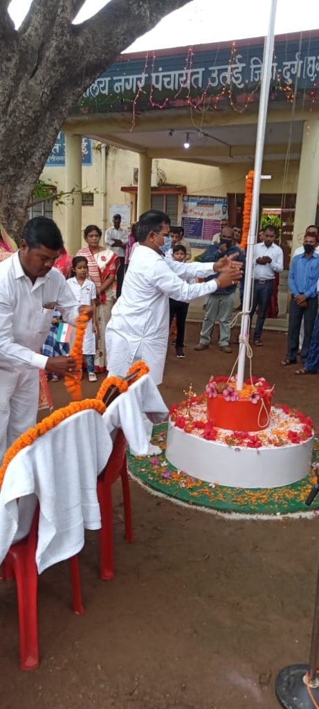 उतई- सम्पूर्ण देश प्रदेश सहिंत उतई नगर में भी आज 75 वां स्वतंत्रता दिवस हर्सोल्लास मनाया गया..कॅरोना काल के चलते स्कूलों में बच्चों की उपस्थिति नगण्य रही किन्तु नगर प्रतिनिधि व आमजन ने बढ़चढ़कर ध्वजरोहण कार्यक्रम में भाग लिया।नगर पंचायत कार्यालय में अध्यक्ष डिकेन्द्र हिरवानी.महाविद्यालय में प्रह्लाद वर्मा, हायर सेकेंड्री स्कूल सरस्वती शिशु मंदिर व सहकारी समिति कार्यालय में अध्यक्ष रूपनारायण शर्मा ने ध्वजरोहण किया।गांधी चौक, सद्भावना चौक, मछुवा सहकारी समिति ,थाना परिसर,शासकीय सामुदायिक स्वास्थ्य केंद्र,सहिंत नगर के विभिन्न स्थानों पर भी ध्वज रोहण किया गया। इस अवसर पर नगर पंचायत के उपाध्यक्ष रविंद्र वर्मा जनता कांग्रेस छत्तीसगढ़ जे के जिलाध्यक्ष सतीश पारख सभी पार्षद पूर्व पार्षद एल्डरमैन नगर के वरिष्ठ जन व आमजनमानस सहिंत सभी समाज प्रमुख उपस्थित थे।