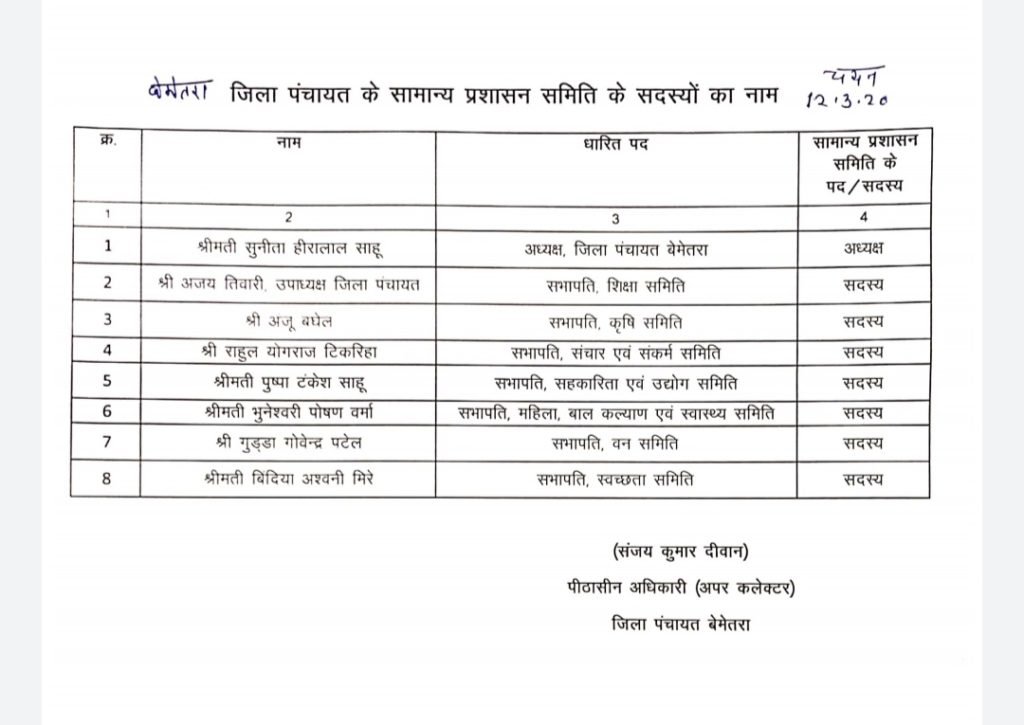 जिला पंचायत सामान्य प्रशासन समिति का गठन