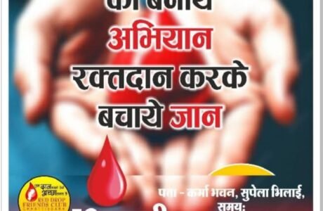 12 फरवरी को रेड ड्रॉप फ्रेंड्स क्लब छत्तीसगढ़ का स्थापना दिवस, रक्तदान शिविर व सम्मान समारोह का आयोजन