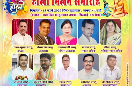 जिला साहू संघ भिलाई नगर द्वारा होली मिलन समारोह 13 मार्च को